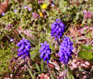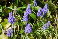 ムスカリの花が陽光のなか咲いています
