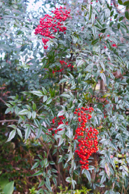 ナンテンの実の鮮やかさが寒風のなかに彩ます。